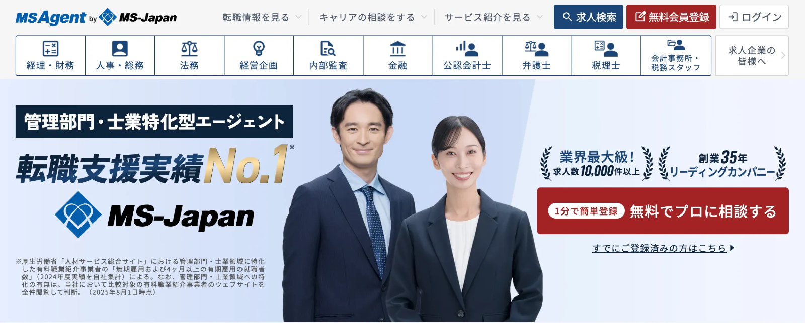実績 | 管理部門•士業特化型エージェント 転職支援実績No.1※ |